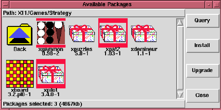 You may also select, unselect, or verify a package while querying it by using the buttons provided. Click on the Close button when you are finished looking at the packages.