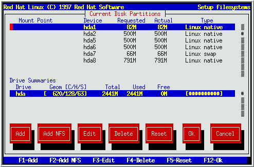 With the exception of certain esoteric situations, Disk Druid can handle the partitioning requirements for a typical Red Hat Linux installation.