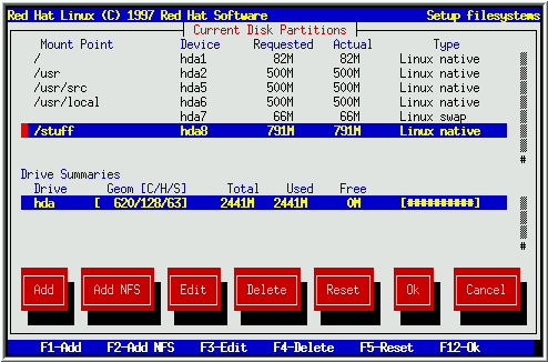 Please Note: You will need to dedicate at least one partition to Red Hat Linux, and optionally more. This is discussed more completely in Section 2.4.4.