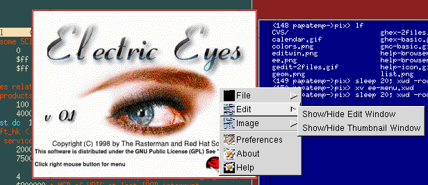 Once Electric Eyes is running you can bring up all the menu options by clicking the right mouse button, as shown in Figure 2-13. The most interesting options are probably those available Edit submenu.