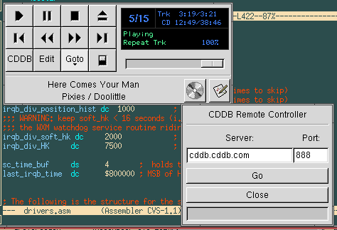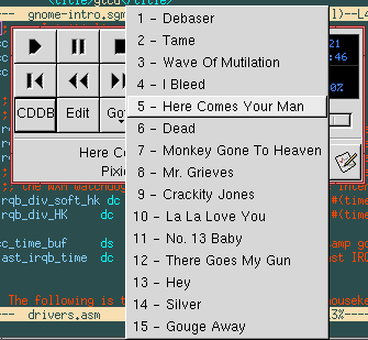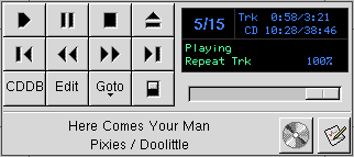 Here are some screen shots which show you how you can use gtcd and what it can do. The first one (Figure 2-15) shows me blasting the Pixies [1] song Here Comes Your Man in my headphones as I write these words.