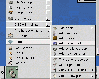 To add the button to your Panel, go to the Main Menu => Panel and click on Add log out button (see Figure 4-2). Then, just click on the launcher on the Panel to log out.