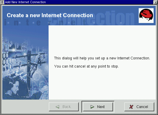 If you don't already have devices configured, you'll see the Add New Internet Connection dialog (see Figure 6-3).