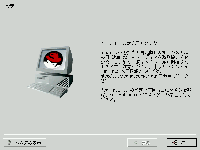 Red Hat Linux 6.2J のアップグレードが完了しました。