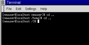 Als Sie festgestellt haben, dass Sie sich im Verzeichnis /home/neuerbenutzer befinden, bezog sich dies auf die vollständige oder "absolute" Pfadangabe, die relativ zum Root-Verzeichnis angegeben wird. Das Verzeichnis neuerbenutzer befindet sich gewissermaßen zwei Verzeichnisebenen unterhalb von Root, der obersten Ebene in Ihrem System.