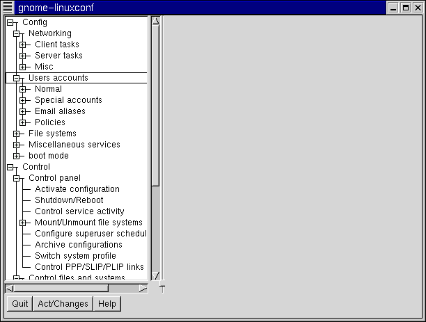 Figure 11-1. Finding the Users Accounts Entry in Linuxconf