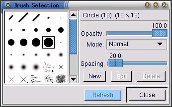 Lorsque vous utilisez des outils de dessin de GIMP, vous pouvez modifier les attributs de la ligne tracée en sélectionnant une brosse particulière.