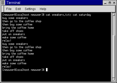 Le contenu des deux fichiers sera affiché - d'abord tennis.txt, puis samedi (comme indiqué dans la Figure 15-14).