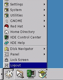 In modo analogo, in KDE, potete effettuare il log out dal pulsante menu sul pannello (vedasi Figura 1-9).
