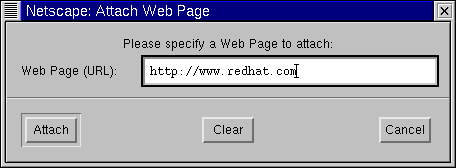 Potete trascinare file dal vostro desktop o dal file manager allo stesso modo con cui trascinate le URL da Navigator. Dovete solo premere il tasto del mouse sul file che volete allegare, e trascinarlo sul campo attachment del vostro messaggio. |