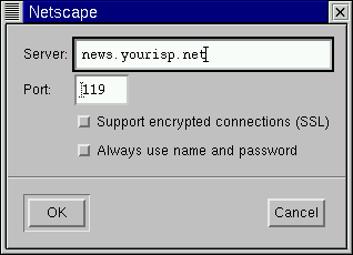 Per iniziare, premete il pulsante Add. Nella finestra che verrà aperta, (si veda la Figura 7-11) inserite le informazioni sul news server che vi è stato fornito dal vostro ISP.