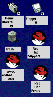 Le icone possono anche essere link a siti Web. Con un doppio click sull'icona contrassegnata come supporto Red Hat per esempio, il vostro browser Netscape si avvierà e visualizzerà il sito di supporto online di Red Hat.