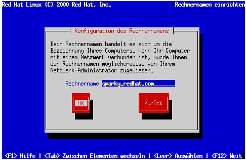 Falls Ihr Computer nicht Bestandteil eines Netzwerks ist, können Sie einen Rechnernamen für Ihr System eingeben. Nutzen Sie die Möglichkeit, und geben Sie einen Namen ein. Wenn Sie keinen Namen angeben, wird Ihrem System die Bezeichnung localhost zugewiesen.