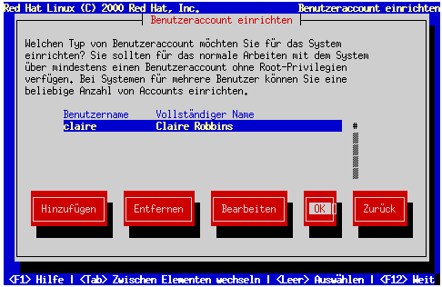 Um zusätzliche Benutzeraccounts zu erstellen, wählen Sie Hinzufügen im Dialogfeld Benutzeraccount einrichten (siehe Abbildung 6-15) oder OK, um mit der Installation fortzufahren.