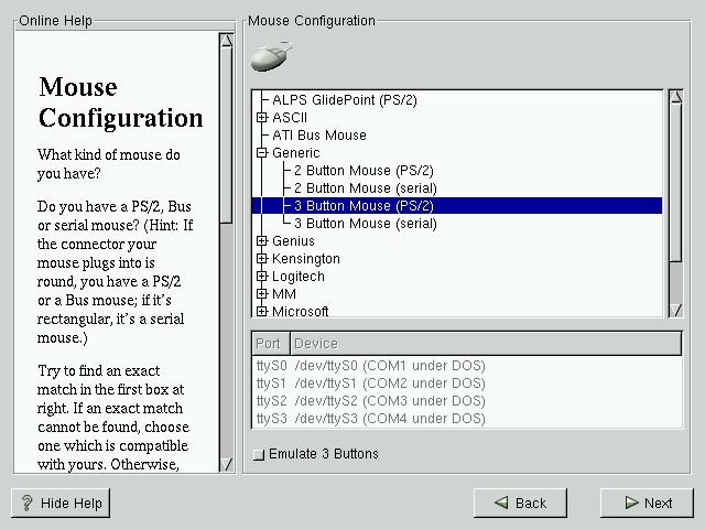 If you cannot find a mouse that you are sure is compatible with your system, select one of the Generic entries, based on your mouse's number of buttons, and its interface.