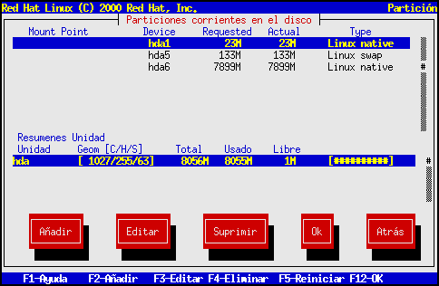 La herramienta de particionamiento usada en Red Hat Linux 7.0 será Disk Druid. Con la excepción de ciertas situaciones, Disk Druid puede cumplir los requisitos de particionamiento para una instalación normal de Red Hat Linux.