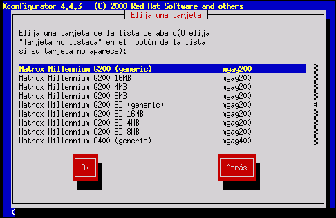 Si el programa de instalación no puede detectar su adaptador de vídeo, visualizará una lista de tarjetas, como en Figura 6-20. Seleccione su tarjeta de vídeo de la lista usando las teclas de cursor y Space. Si su tarjeta no aparece en la lista, elija Unlisted Card y pulse Space.