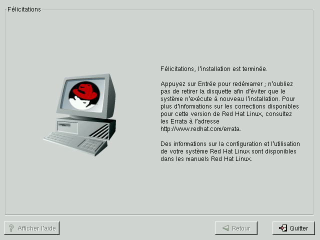 Félicitations ! L'installation de Red Hat Linux 7.0 est à présent terminée !