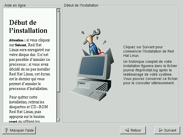 | Précédent | Chapitre 5. Installation complète de Red Hat Linux | Suivant |