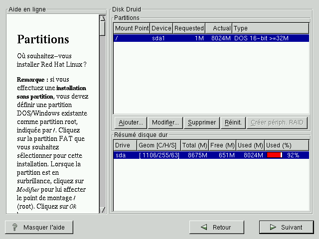 Etant donné que vous n'allez pas ajouter de partitions ni en créer de nouvelles, vous avez vraiment peu de choses à faire avec Disk Druid (un outil de partitionnement avec interface graphique).