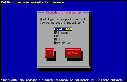 Si vous avez démarré le système à partir d'une disquette d'amorçage locale ou d'une disquette d'amorçage PCMCIA, insérez le CD-ROM Red Hat Linux, puis sélectionnez CD-ROM local (voir Figure 6-3) et appuyez sur la touche Entrée.