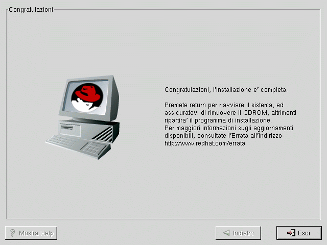 Congratulazioni! Il vostro aggiornamento Red Hat Linux 7.0 č ultimato!