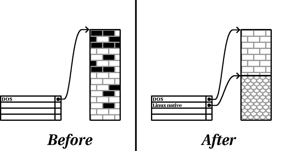 Mit der Zeit wurde natürlich klar, dass vier Partitionen nicht ausreichen. Mit zunehmender Kapazität der Festplatten wuchs die Wahrscheinlichkeit, dass vier Partitionen in üblicher Größe konfiguriert werden konnten und immer noch Platz auf der Festplatte frei war. Es musste ein Weg gefunden werden, mehr Partitionen zu erstellen.