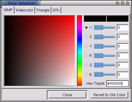 Click on the active color box to display the Color Selection dialog: