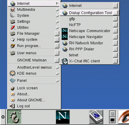 You can also launch RP3 -- without docking it into the Panel -- from either the GNOME Panel (by going to Internet => RH PPP Dialer) or from the shell prompt, by typing /usr/bin/rp3 in an Xterm window.