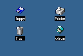 Los dos iconos de la "Disquetera" y del "cdrom" proporcionan un método abreviado para estos dispositivos. Puede acceder a cada uno de estos dispositivos haciendo click sobre estos iconos con el botón izquierdo del ratón.