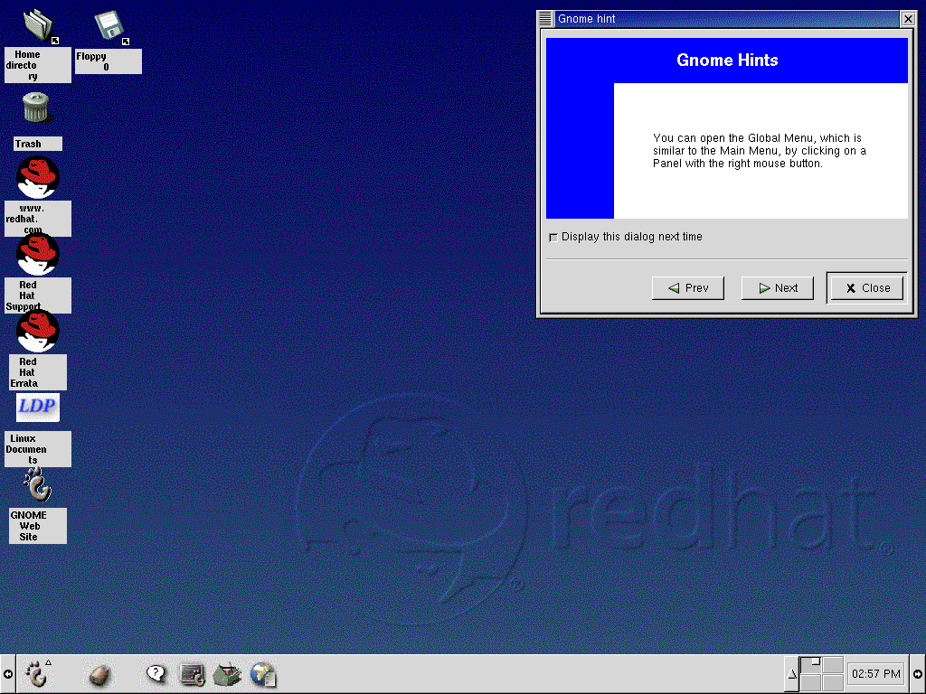 Les lanceurs peuvent également être des raccourcis vers des sites Web. Par exemple, si vous double-cliquez sur le lanceur Red Hat Support de votre bureau, votre navigateur Netscape Navigator s'ouvre et se connecte tout seul au site d'assistance en ligne de Red Hat.