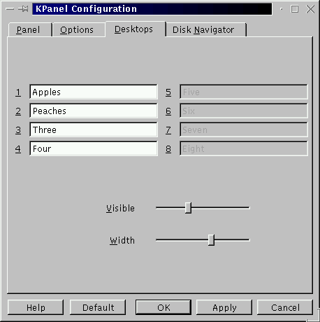Vous pouvez augmenter (ou réduire) le nombre de bureaux disponibles en modifiant la position du curseur Visible de la boîte de dialogue Desktops. Pour disposer de bureaux supplémentaires, faites glisser la barre vers la droite ; pour réduire le nombre de bureaux, faites glisser la barre vers la gauche.