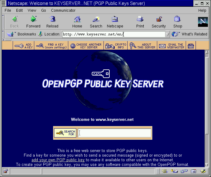 Dal vostro browser andate al sito Keyserver.Net: http://www.keyserver.net e selezionate le opzioni per aggiungere la vostra PGP key.