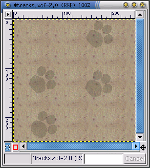 L'immagine pawprint è il punto di partenza su cui si basa l'immagine successiva -- una serie di tracce "camminano" attraverso la pagina come in Figura 9-16. Per creare l'immagine: