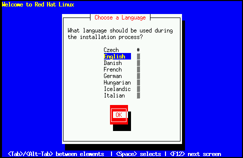 Using the arrow keys, select the appropriate language to use both during the installation and as the system default, and press Enter.