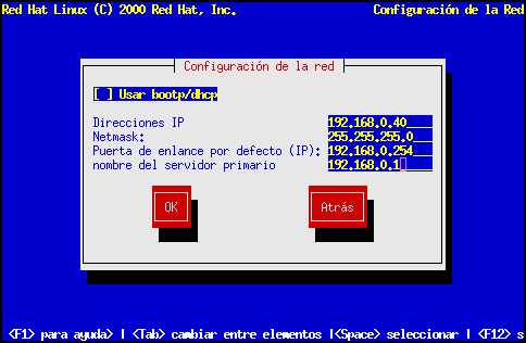 Seleccionar Use bootp/dhcp. En este caso, un servidor existente en su LAN le suministrará dinámicamente la información relacionada con la red necesaria para añadir este sistema a la red en tiempo de conexión (fíjese que si hace esto, DHCP y BOOTP "rellenarán los blancos" por usted).
