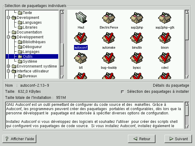 Pour sélectionner des paquetages individuels, cochez la case Sélection individuelle des paquetages , puis cliquez sur Suivant.