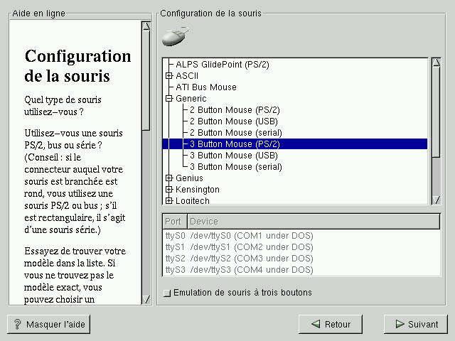 Si vous ne trouvez pas de souris dont vous êtes certain qu'elle soit compatible avec votre système, sélectionnez l'une des entrées génériques, en fonction du nombre de boutons de votre souris et de son interface.
