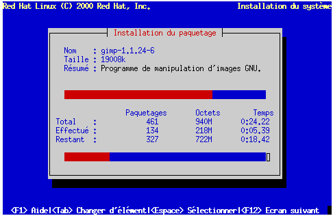 Un écran semblable à la Figure 6-22 indique la progression de l'installation des paquetages.
