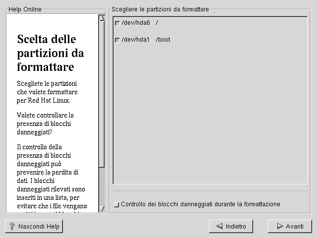 | Indietro | Capitolo 5. Installazione di Red Hat Linux | Avanti |
