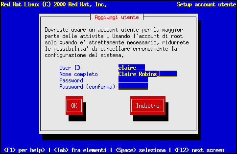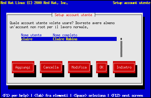 | Indietro | Capitolo 6. Installazione di Red Hat Linux in modalità testo | Avanti |