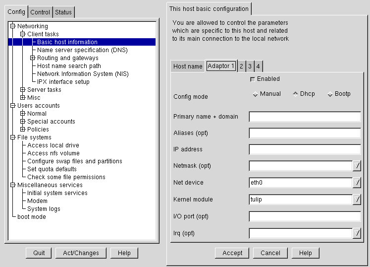 gnome-linuxconf hace fácil la navegación por la estructura jerárquica de linuxconf.
