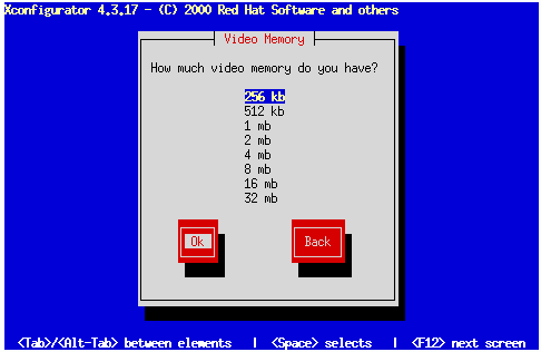 Si vous hésitez sur la quantité de mémoire disponible sur la carte, consultez la documentation correspondante. Le choix d'une quantité de mémoire plus importante que celle dont dispose la carte, sans risquer de l'endommager, peut toutefois entraîner un démarrage incorrect du serveur XFree86.