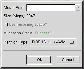 Once the desired partition is highlighted, choose Edit. A new window will appear allowing you to name this partition (see Figure B-2). In the mount point field, label this partition as / (known as root) and click Ok.