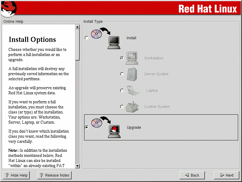 At this point, you should have chosen Upgrade as your preferred installation type (see Figure A-1).