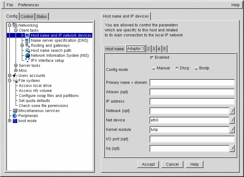 Configuration réseau à l'aide de Linuxconf