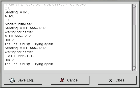 Après avoir choisi de déboguer le compte, le système affiche une fenêtre semblable à Figure 6-14, qui vous montre les commandes utilisées pour initialiser le modem, vous connecter à votre fournisseur d'accès Internet et ouvrir une session de votre compte Internet.