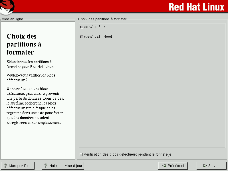 | Précédent | Chapitre 4. Installation de Red Hat Linux | Suivant |