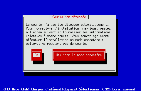 Le programme d'installation essaiera d'abord d'exécuter le mode le plus lent. S'il échoue, il essaiera d'exécuter dans un mode de résolution moins performant. S'il échoue encore, il passera en mode texte.