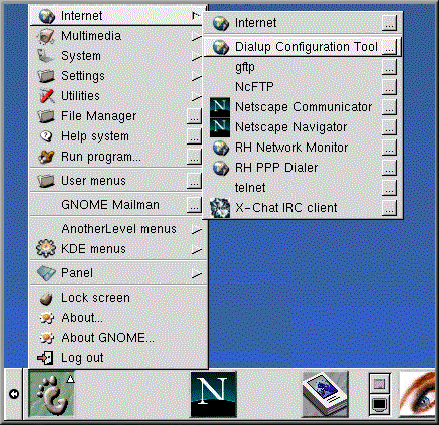 Potete inoltre avviare RP3 da GNOME panel (selezionando Main Menu => Programs => Internet => RH PPP Dialer) o dal prompt della shell, digitando /usr/bin/rp3.